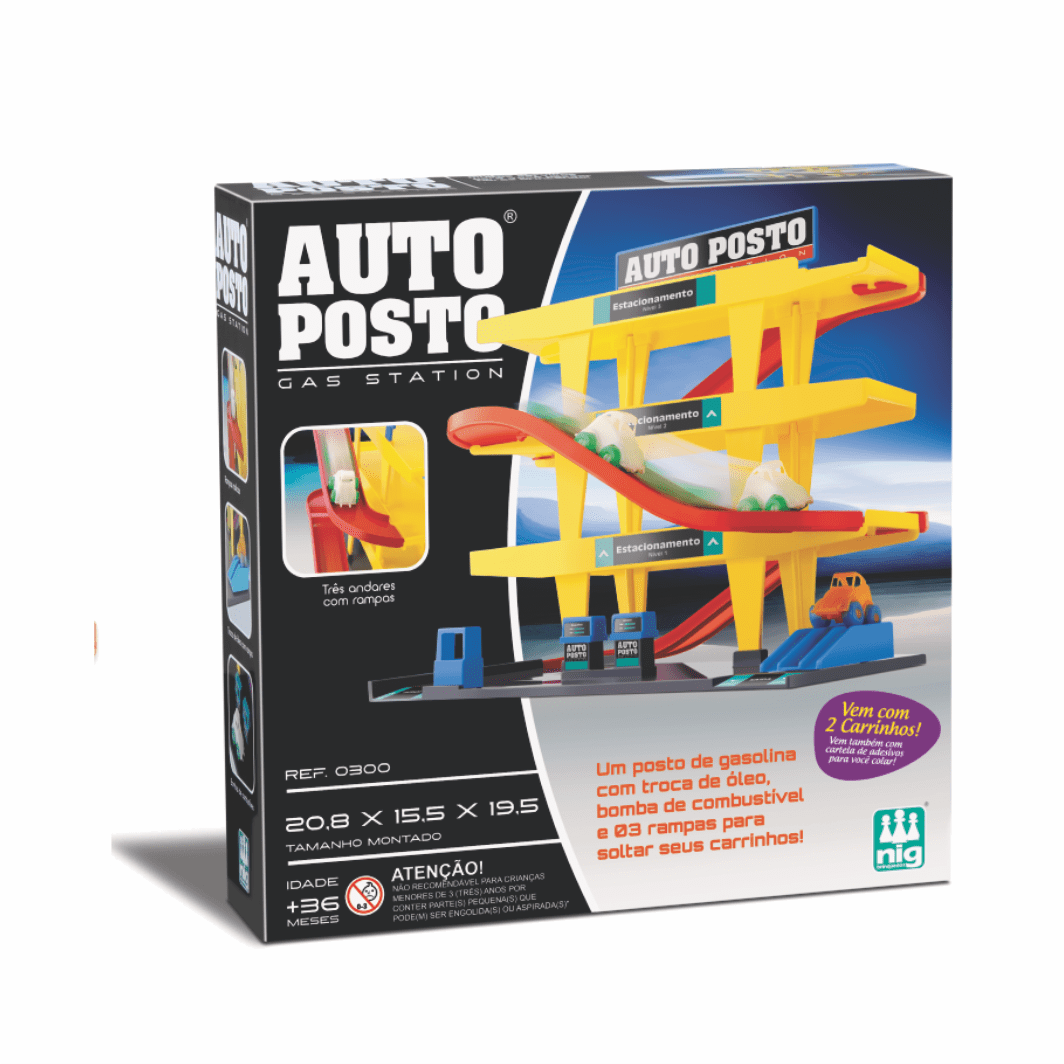 Nosso “caçula” da coleção de posto infantil está de volta com novo design e funcionalidade. O AUTO POSTO tem 3 andares, rampa para troca de óleo, bombinha de combustível e carrinhos.