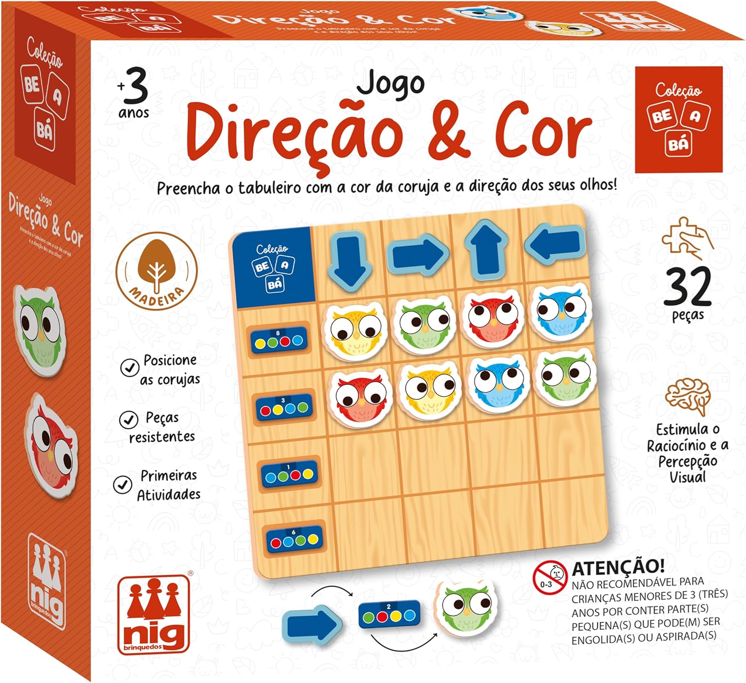 Jogo Be a Bá Direção e Cor é um jogo educativo desenvolvido para estimular o aprendizado das crianças de forma lúdica, trabalhando cores, direções e percepção visual. A proposta é encaixar as peças corretamente no tabuleiro seguindo as indicações de cores e direção dos olhos das corujas.