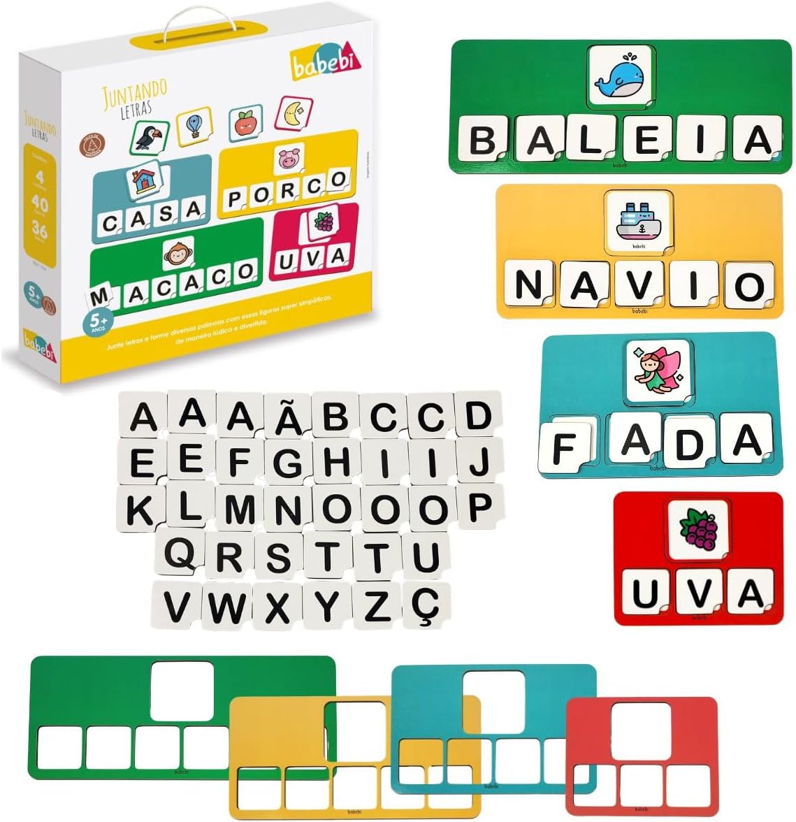 Contém 4 cartelas, 40 figuras, 36 letras. Indicado para crianças a partir de 5 anos.