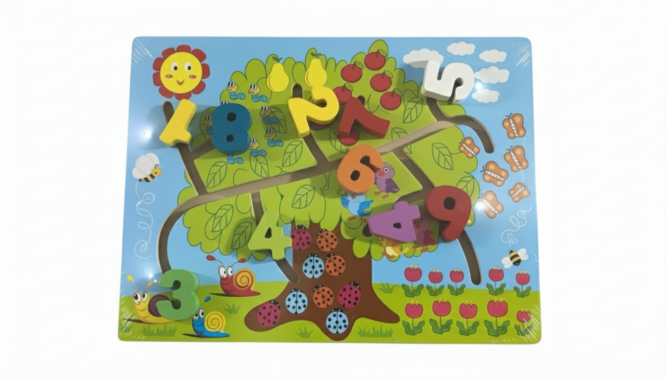 Aprendizado Divertido: O modelo de labirinto em madeira auxilia as crianças a aprenderem os números e as quantidades de forma lúdica.