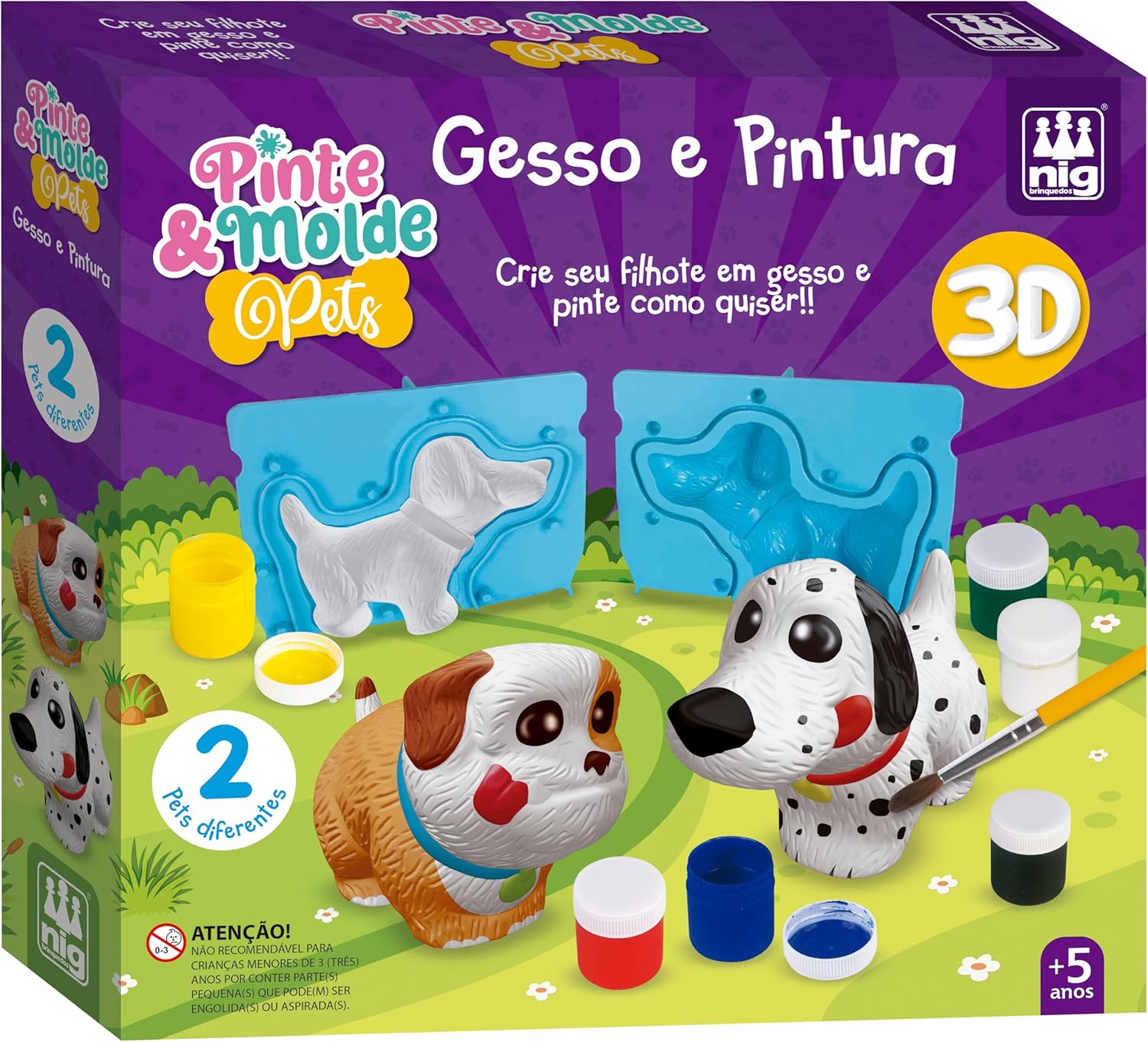 As crianças vão poder criar seus próprios caezinhos 3D e pintar de forma criativa! O Kit Pinte & Molde Pets traz a mágica das peças em gesso produzidas nos moldes de forma simples e divertida!