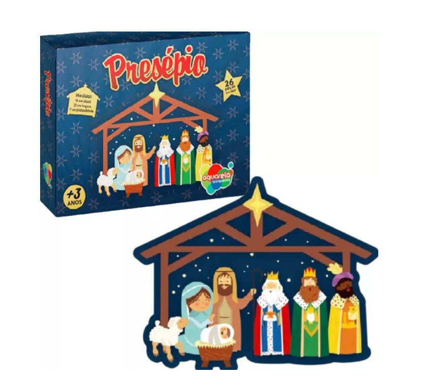 Conheça o PRESÉPIO 3D! Objetivo do brinquedo Presépio 3D em MDF é ensinar e desenvolver as virtudes, aproximando as crianças das tradições cristãs, resgatando o verdadeiro sentido do Natal e criando uma oportunidade para catequese de forma lúdica e divertida. Com o presépio 3D em MDF as crianças vão orar e brincar com o Menino Jesus na manjedoura, com Maria e José, com os Reis Magos, com o anjo e com os animais! Com este brinquedo católico é possível ensinar e desenvolver as virtudes: - de Correspondência - de Recolhimento - Perfeitas - FAIXA ETÁRIA | A partir de 3 anos - PARTICIPANTES | 1 ou mais - COMPOSIÇÃO : 26 peças em madeira MDF - Caixa de Papelão