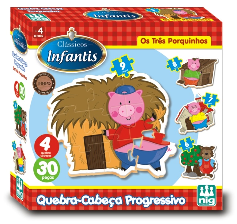 Os porquinhos mais queridos e trapalhões e suas casinhas estão no Quebra-cabeça Progressivo Os Três Porquinhos da NIG.