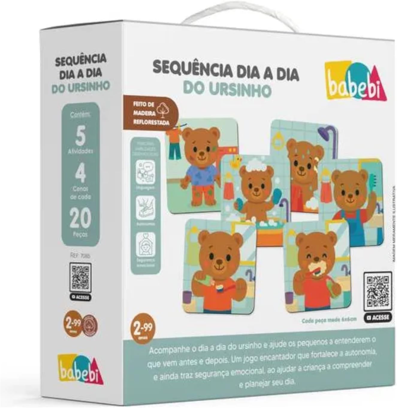 O Sequência Dia a Dia do Ursinho Babebi é um brinquedo educativo em madeira.