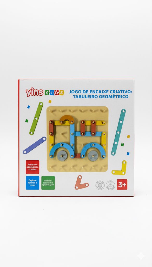 O Jogo de Encaixe Criativo: Tabuleiro Geométrico é um brinquedo educativo de alta qualidade, ideal para o desenvolvimento infantil. Tabuleiro em plástico resistente e peças em madeira, possui cantos arredondados e utiliza tinta não tóxica, garantindo segurança total para as crianças.