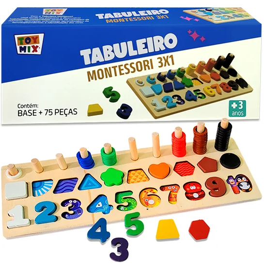 Com este Tabuleiro Montessori 3 em 1 em Madeira, as crianças podem explorar o sistema decimal, praticar contagem, realizar operações aritméticas básicas, identificar formas geométricas e aprender a reconhecer cores.