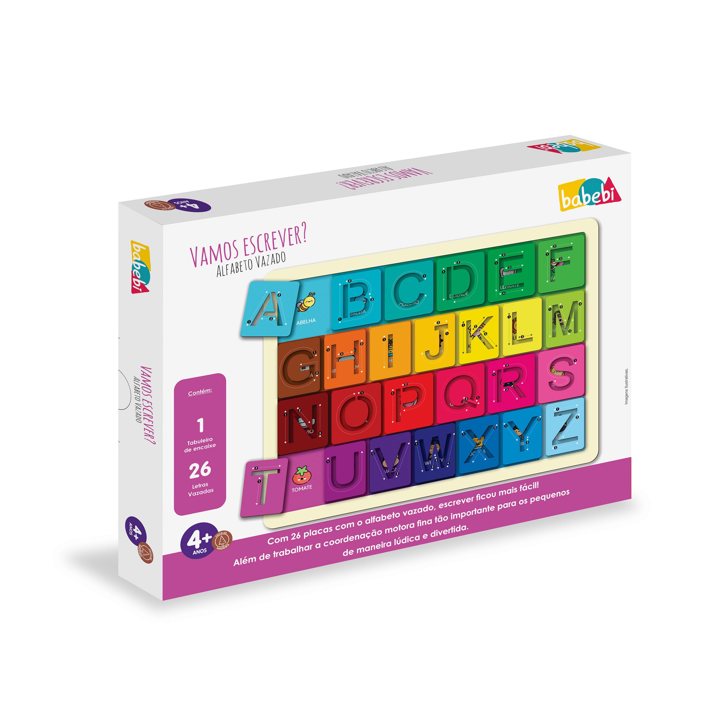 Contém 1 tabuleiro com 26 letras vazadas. Indicado para crianças a partir de 4 anos.